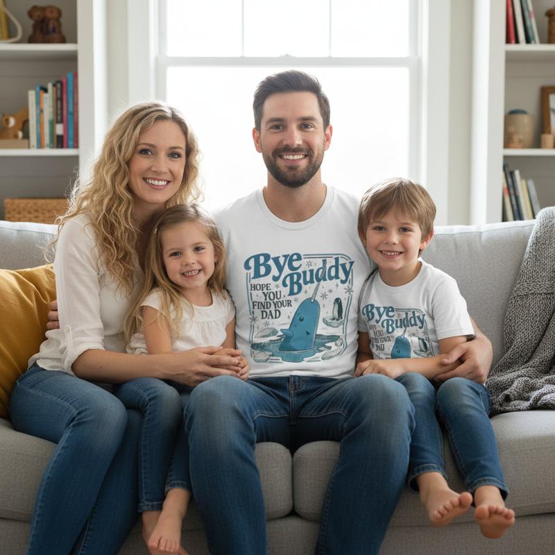Funny Movie Quote Graphic T-Shirt – Bye Buddy Narwhal Tee